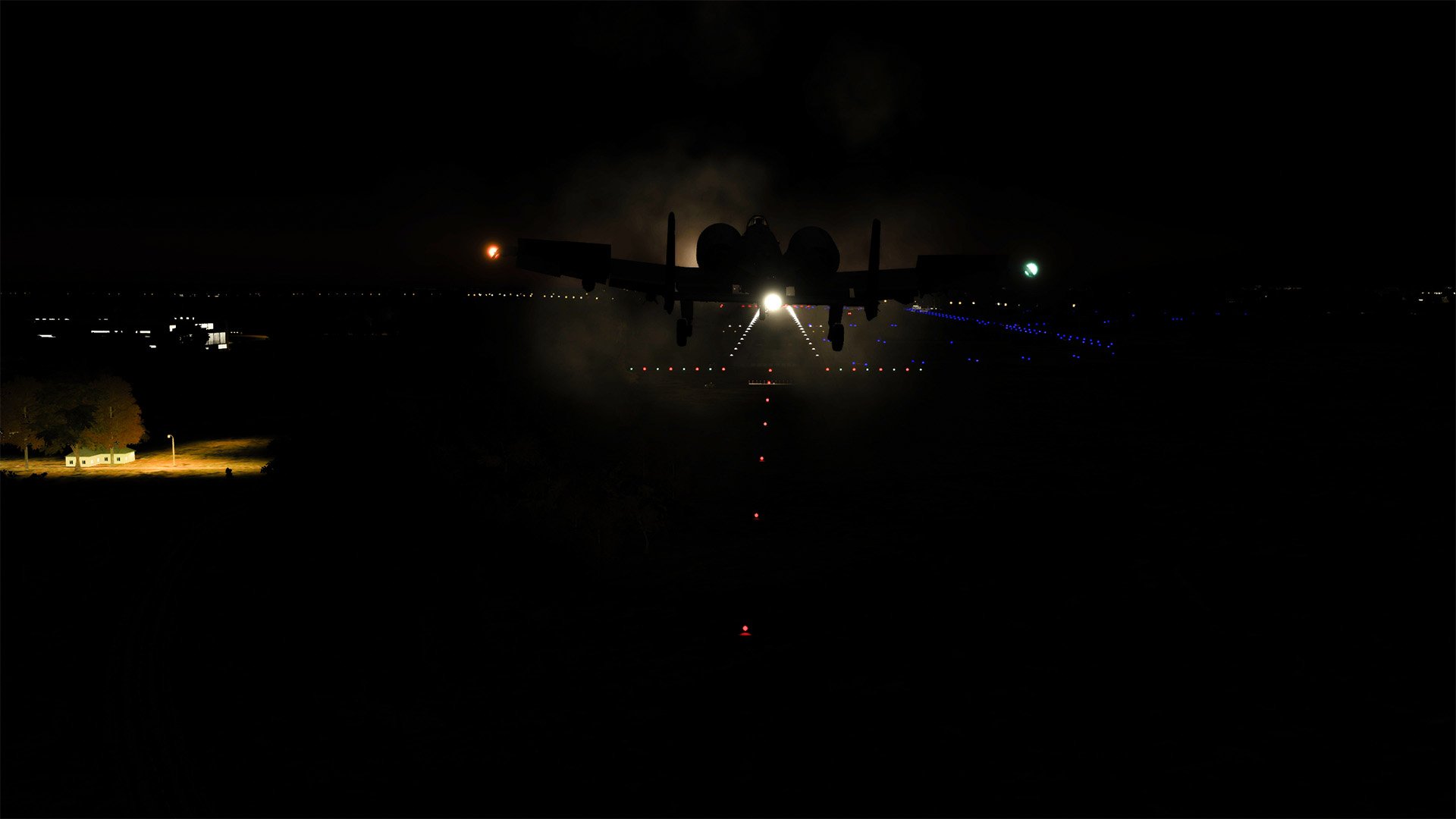 Eine A-10C der 1. "Black Dragons" auf dem Endanflug während einer nebligen Nacht. Senaki AB, 2021. Yurgon.